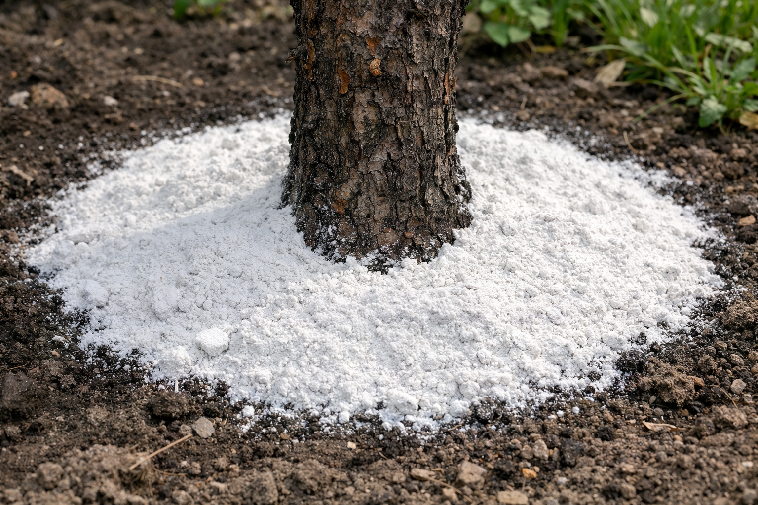 Pulber tuleb puistata üle kogu puutüve ringi, keskendudes võra laiusele. Siin asub suurem osa toitumisjuurtest.