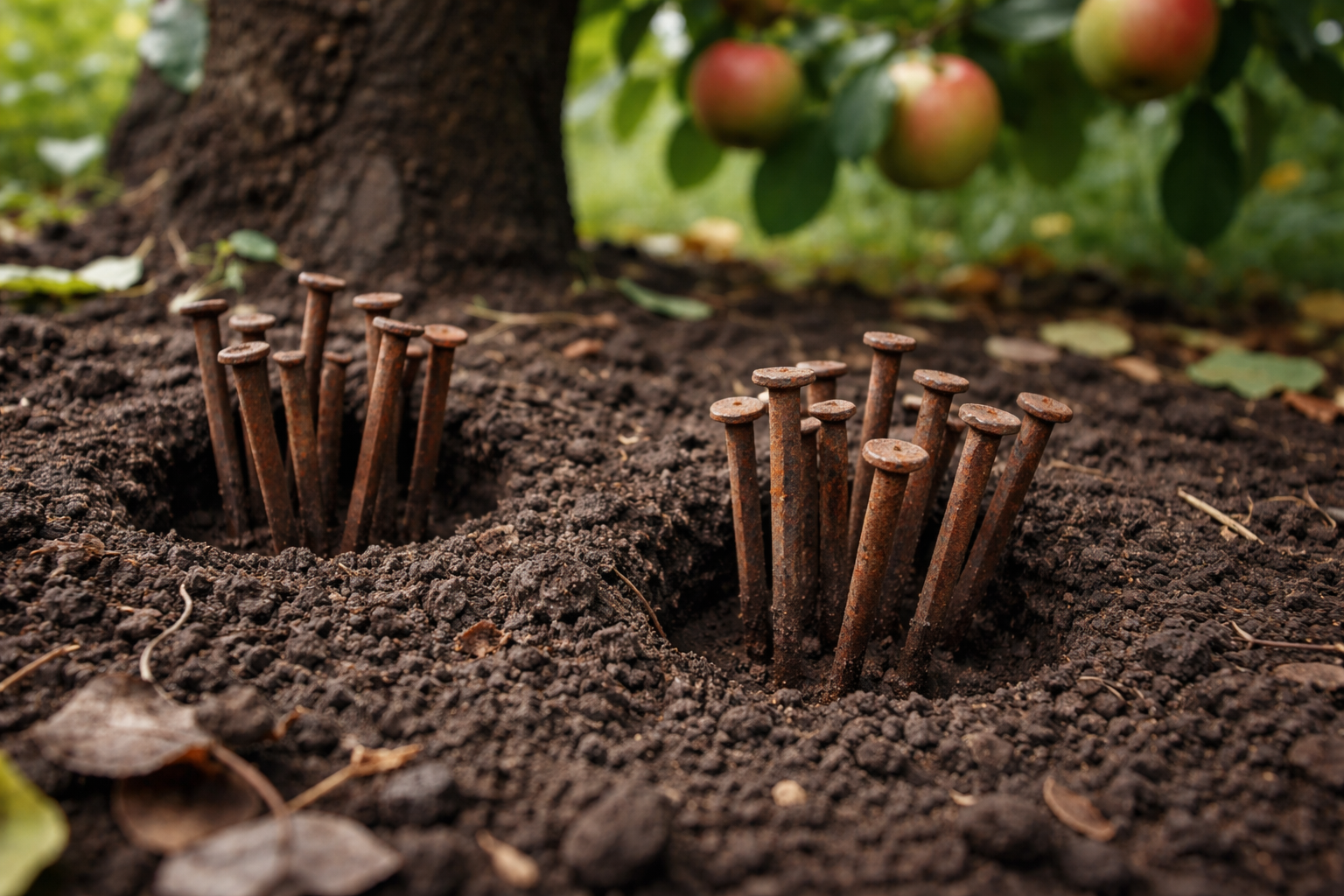 Oluline on mõista, et mitte iga metallitükk ei too aiale kasu. Vask, alumiinium või kaasaegsed korrosioonivastase kattega sulamid lebavad maapinnas tühimassina, sisenemata vajalikesse keemilistesse reaktsioonidesse. Puu vajab täpselt roostetavat musta rauda.