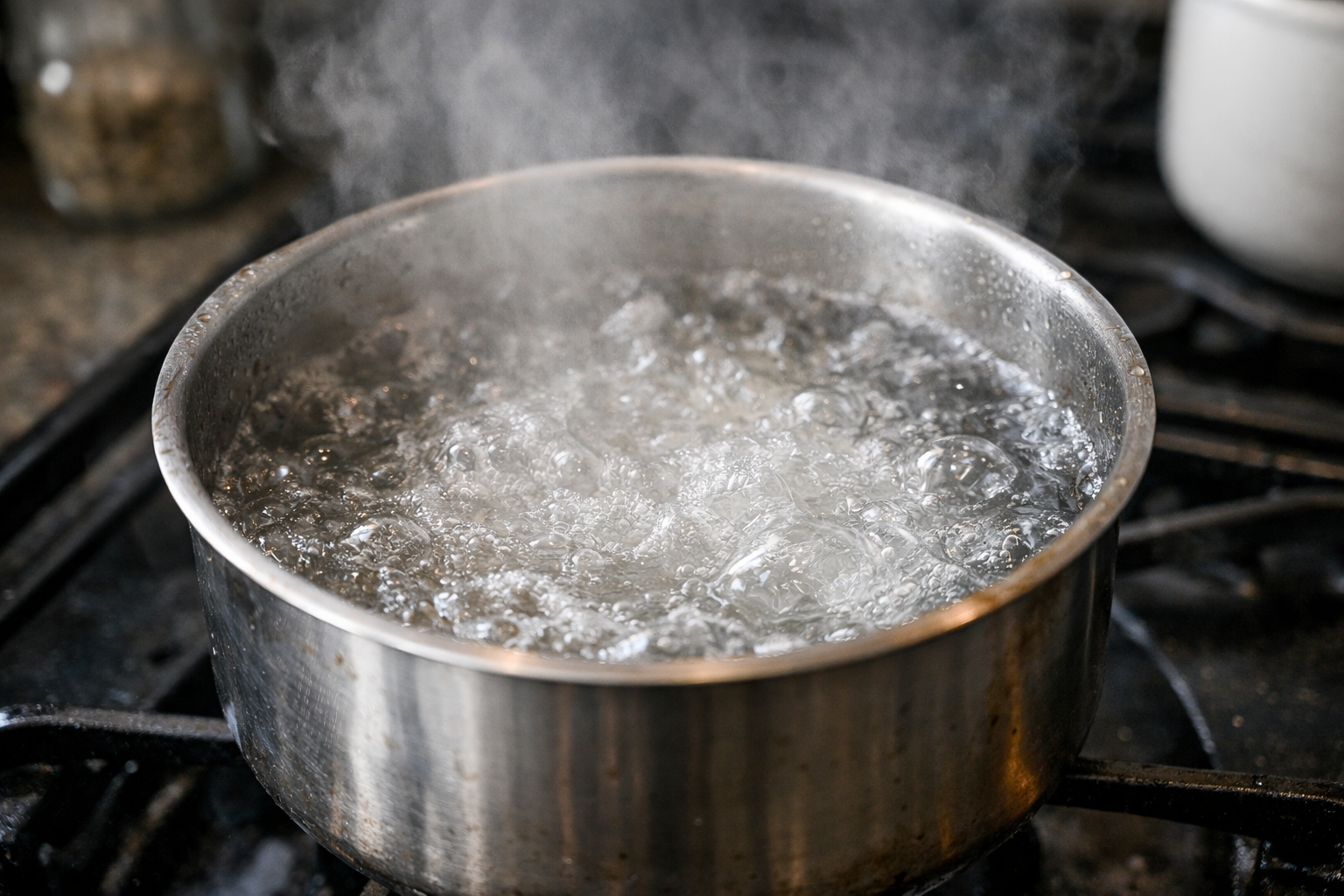 • Valage laiale kastrulile puhas vesi. • Lisage võimas looduslik neutraliseerija – lauaäädikas. • Kuumuta see segu tasasel tulel ja lase pliidil podiseda.