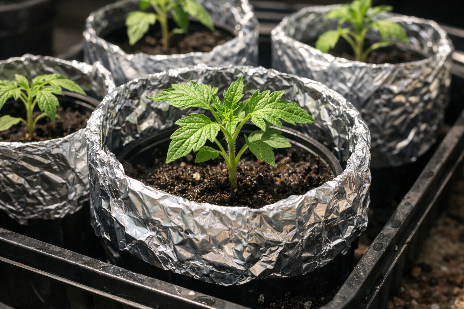 Minu isiklik end tõestanud vahend lõunapoolsete akende juurte ülekuumenemise vastu on plasttopside tihedalt kinni keeramine tavalise toidukilega, läikiv pool väljapoole.