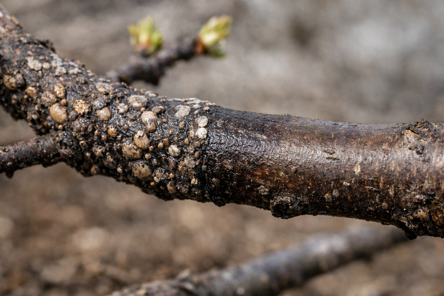 Sellised kahjustatud oksad tuleb ilma kahetsuseta tervele heledale koele maha lõigata ja istandustest eemal tules kohe hävitada.