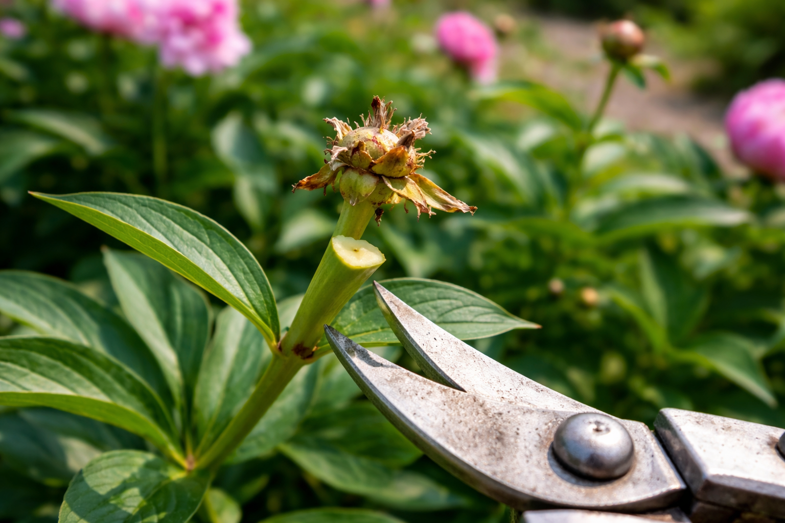 Pojengide kärpimine kohe pärast kroonlehtede kukkumist ei ole ainult esteetiline vajadus. Jättes seemnekaunad põõsale, sunnime taime kulutama tohutult energiat paljunemisele, selle asemel, et risoomi toitaineid talletada. Nõuetekohane hooldus sel perioodil tagab selle õienupud saavad maksimaalset toitumist.
