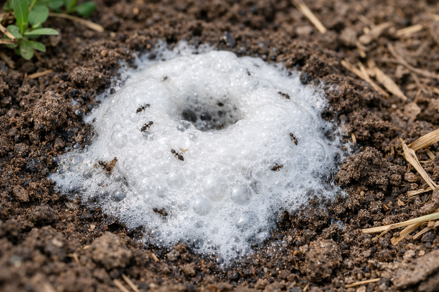 Edu peamine salanüanss peitub nende kahe komponendi ägedas keemilises reaktsioonis otse sipelgapesa sees. Sihisev vaht mitte ainult ei hirmuta kahjureid, vaid tungib koheselt sügavatesse käikudesse ja jõuab peiduspaika kuninganna sipelgas.