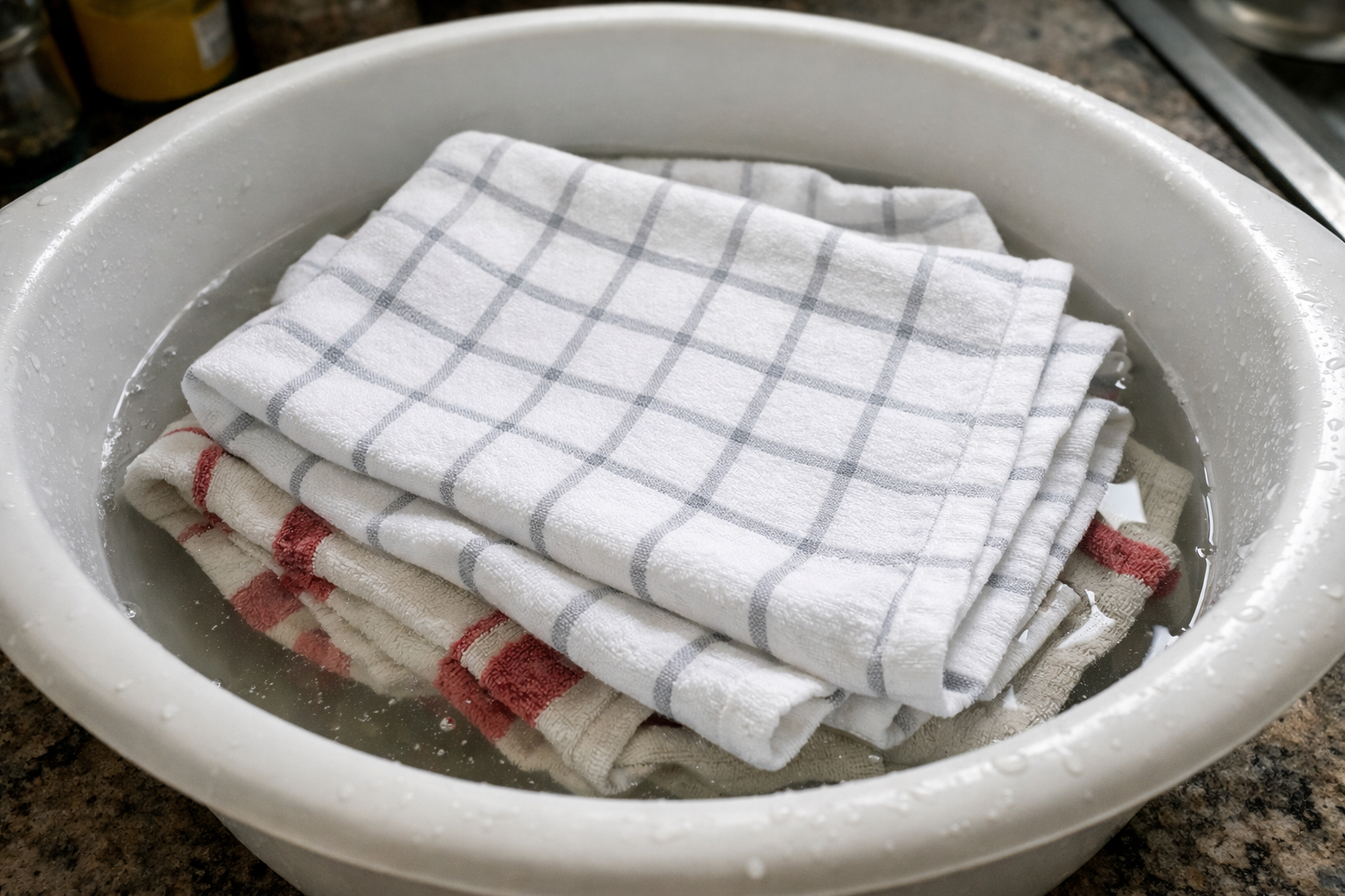 Leota määrdunud tekstiile üleöö kuumas lahuses