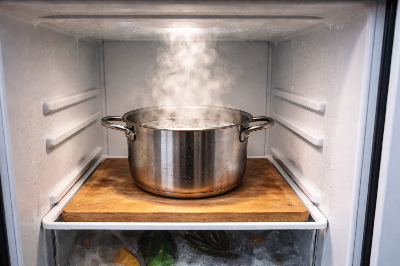 Jääkiht sügavkülmiku seintel mitte ainult ei röövi kasulikku ruumi, vaid põhjustab ka kompressori kulumist. Varem veetsin pool päeva sulatamisel vaba aega, kuni leidsin meetodi, mis sulatab ilma föönita ja nugadeta vaid mõne minutiga mitu sentimeetrit jääd.