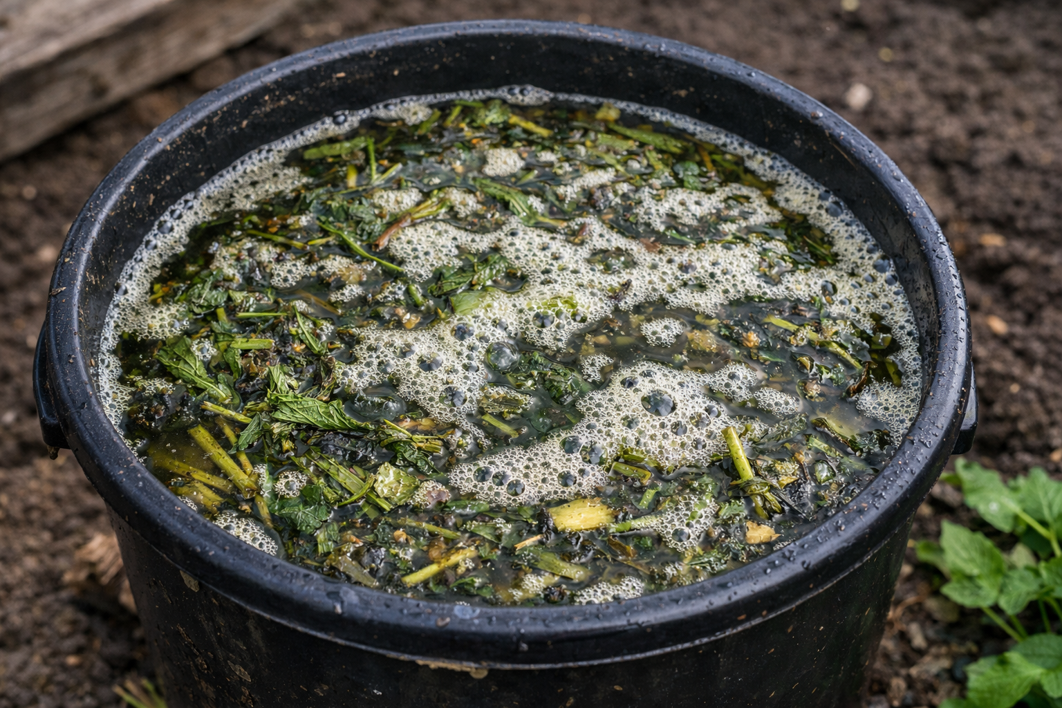Salajane nüanss: lisa tünni kindlasti peotäis mulda oma peenardest või veidi vana komposti; see täidab infusiooni koheselt teie taimedele tuttavate mullabakteritega ja kiirendab käärimist.