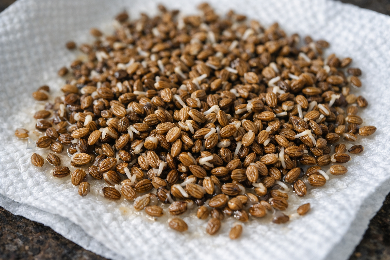 Kerge kuivatamine salvrätikul pärast veeprotseduure taastab seemnete voolavuse.