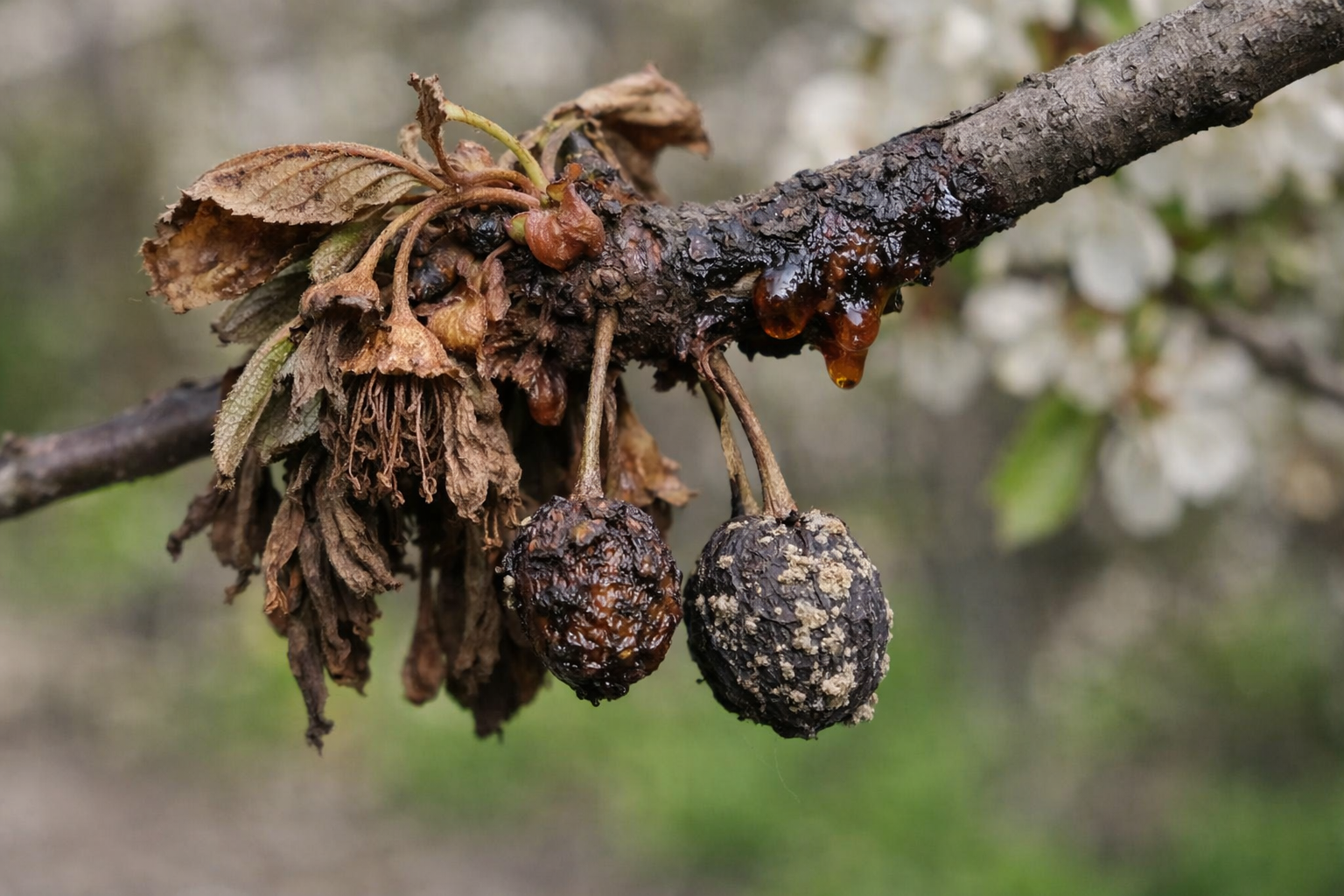 Kevadel ärkab aed ja just sel hetkel seeninfektsioon lööb. Paljud inimesed ajavad selle probleemi segamini korduvate külmade tagajärgedega, kaotades ravi jaoks väärtuslikku aega. Patogeen talvitub kahjustatud okstel ja mumifitseerunud viljadel ning soojemate ilmade saabudes hakkab ta aktiivselt paljunema.