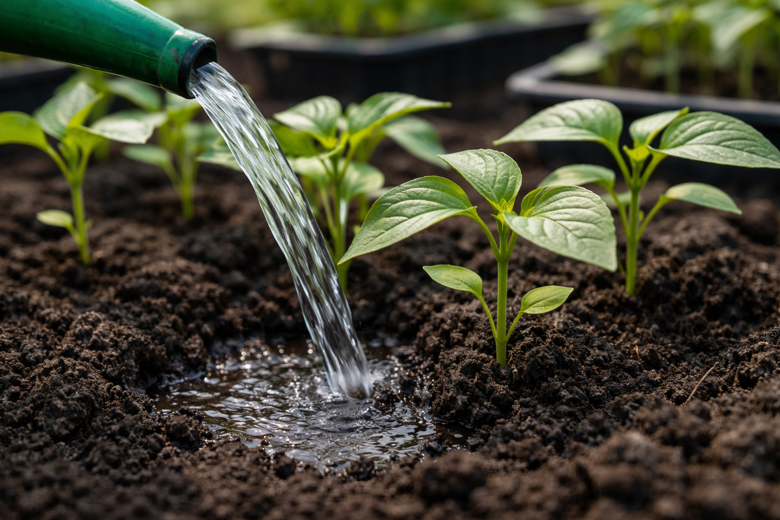 Ärge kunagi valage vett vooliku tugeva surve all, kuna see õõnestab koheselt pealmise mullakihi ja paljastab noorte seemikute õrnad juured.