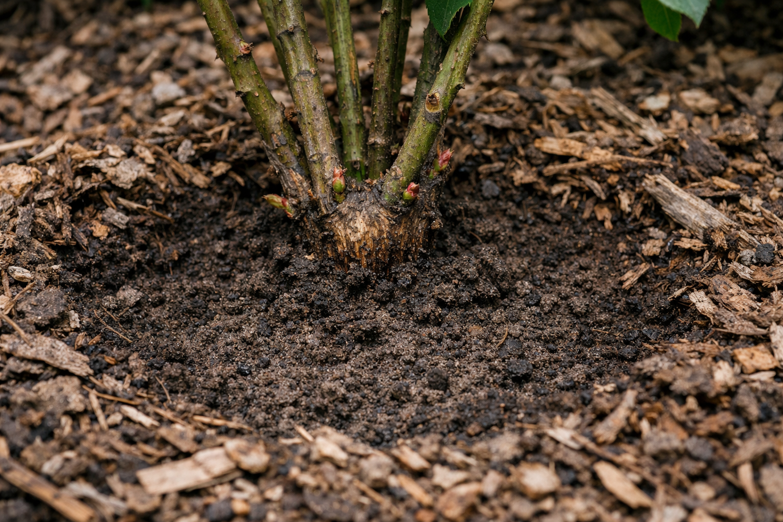 Rehitsege vana multš ettevaatlikult tüvest eemale, et anda kiiresti soojust juurekaelale.
