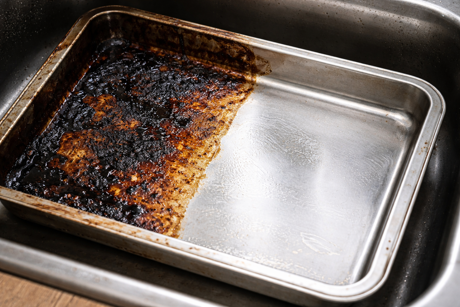 Kuivanud rasv ja must koorik küpsetusplaatidel hirmutavad paljusid inimesi, kuid nende terasvillaga maha nühkimine on viga, mis tapab mittenakkuva kihi. Põhiliste koduste abinõudega on lihtne keemiline nipp, mis lagundab teie silme all isegi kõige kangekaelsemad süsinikuladestused.