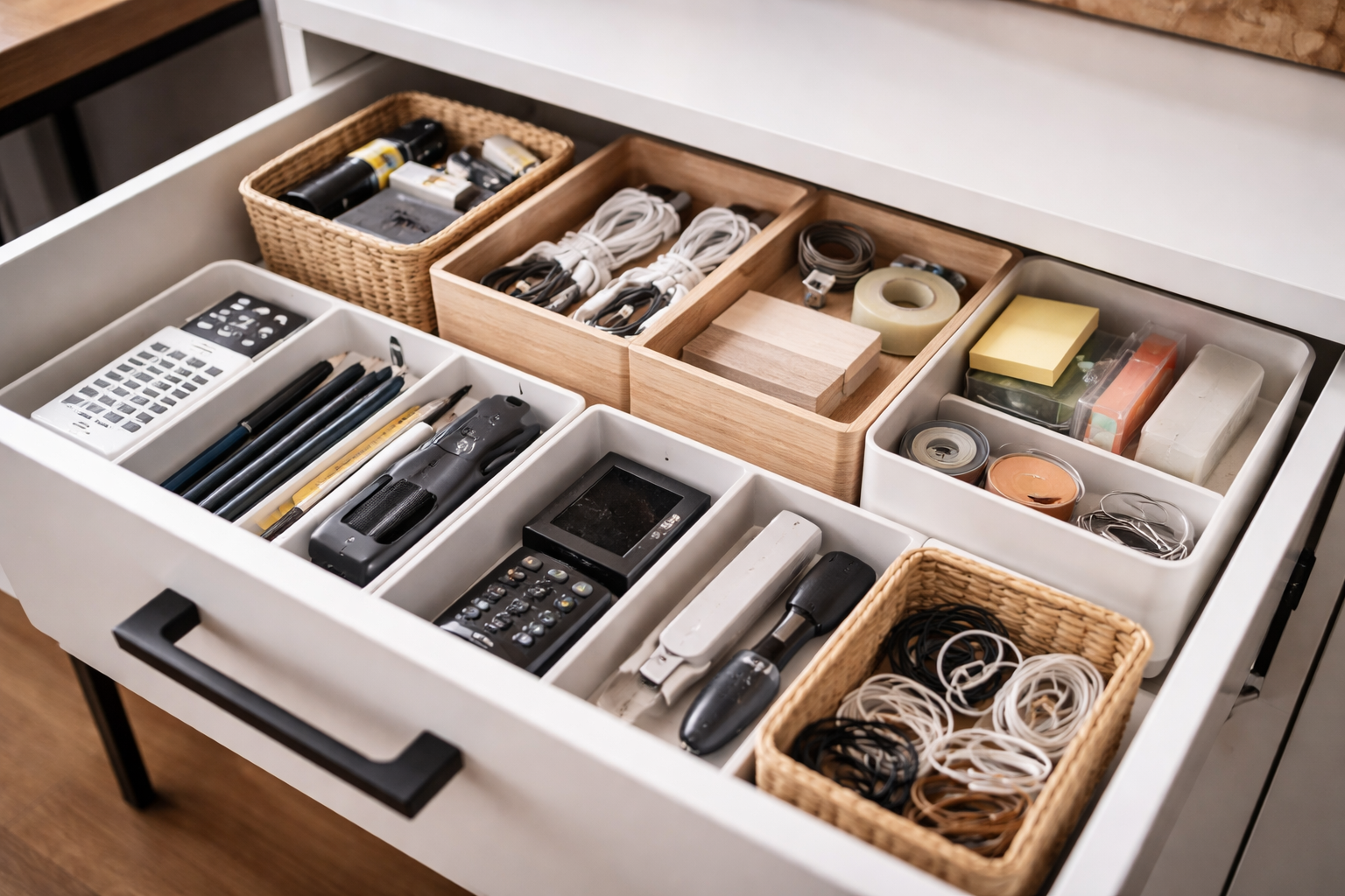 Alustage ühest väikesest sahtlist oma laual ja laiendage järk-järgult teistesse ruumidesse.