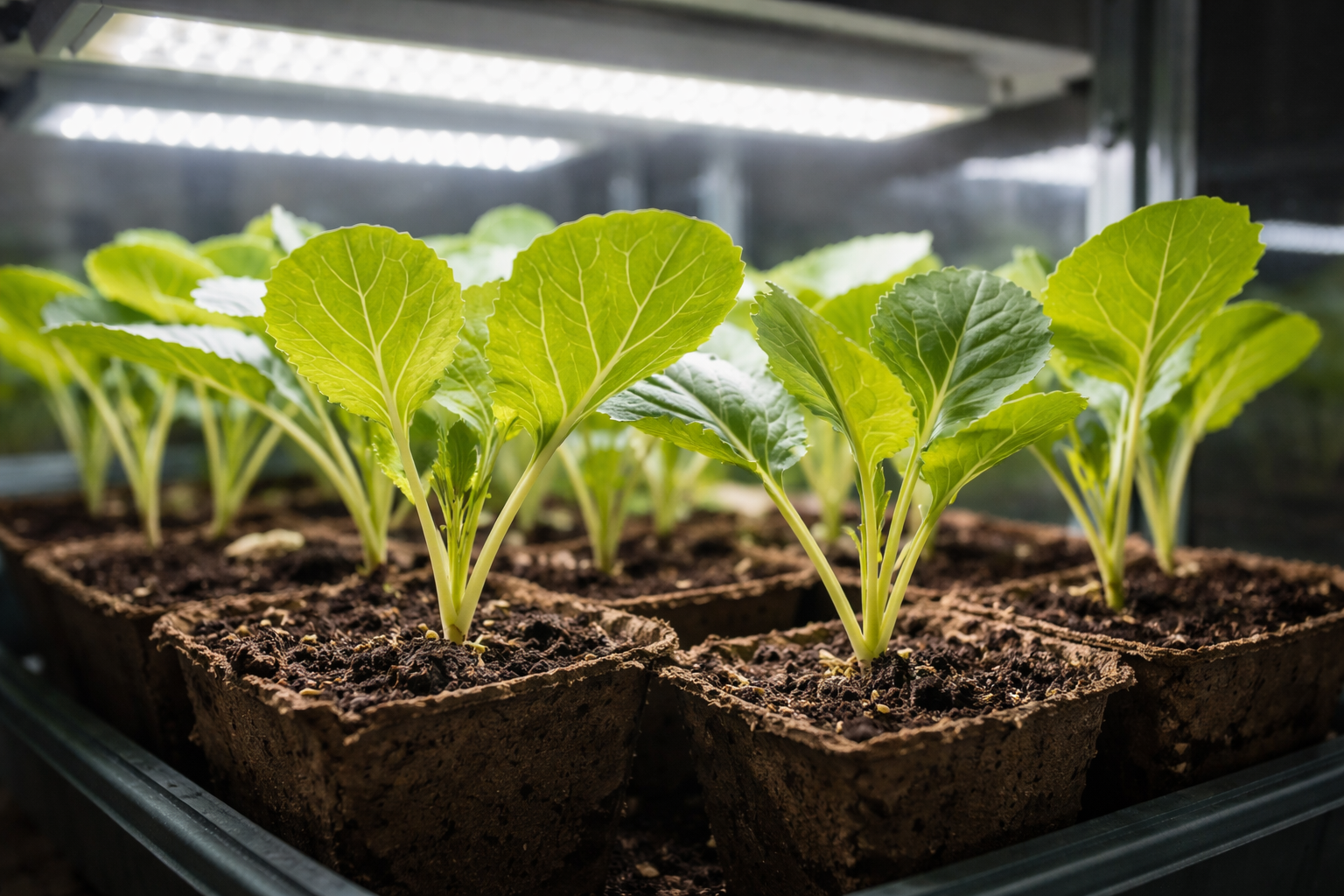 Täielikuks fotosüntees Kapsa seemikud nõuavad õiget spektrit. Kui pilvise ilma tõttu loomulikku päikest napib, tuleb see kunstlikult kompenseerida. Oluline on mõista, et mitte iga valgusallikas ei suuda lehtede kuivamist takistada.