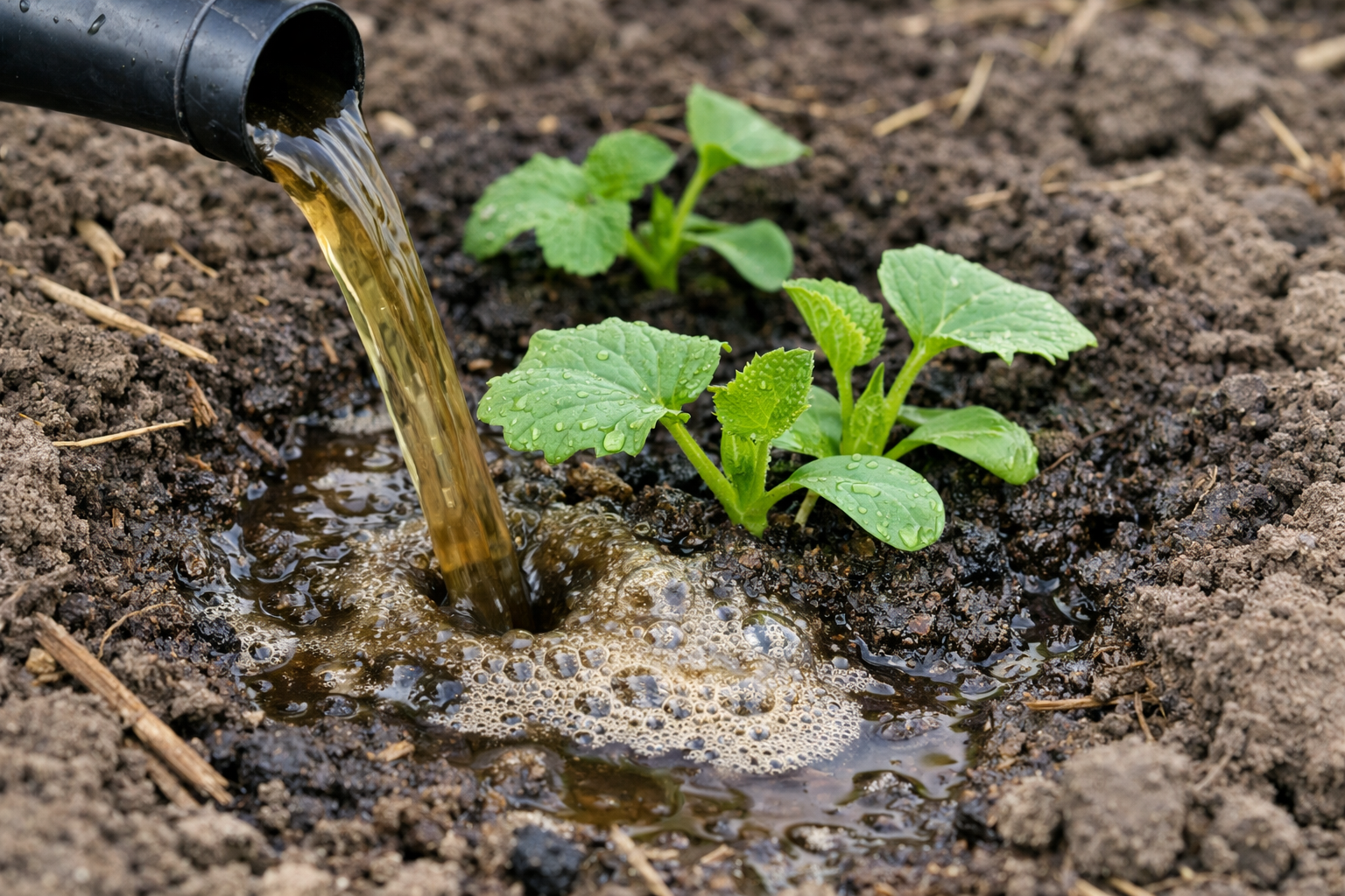 Vedelal kujul orgaanilise aine kevadine pealekandmine on kiireim viis kohaletoimetamiseks lämmastik otse juurtele. Erinevalt kuivast substraadist, mille lagunemine võib kesta kuid, hakkab vedel vorm toimima mõne tunni jooksul pärast kastmist.