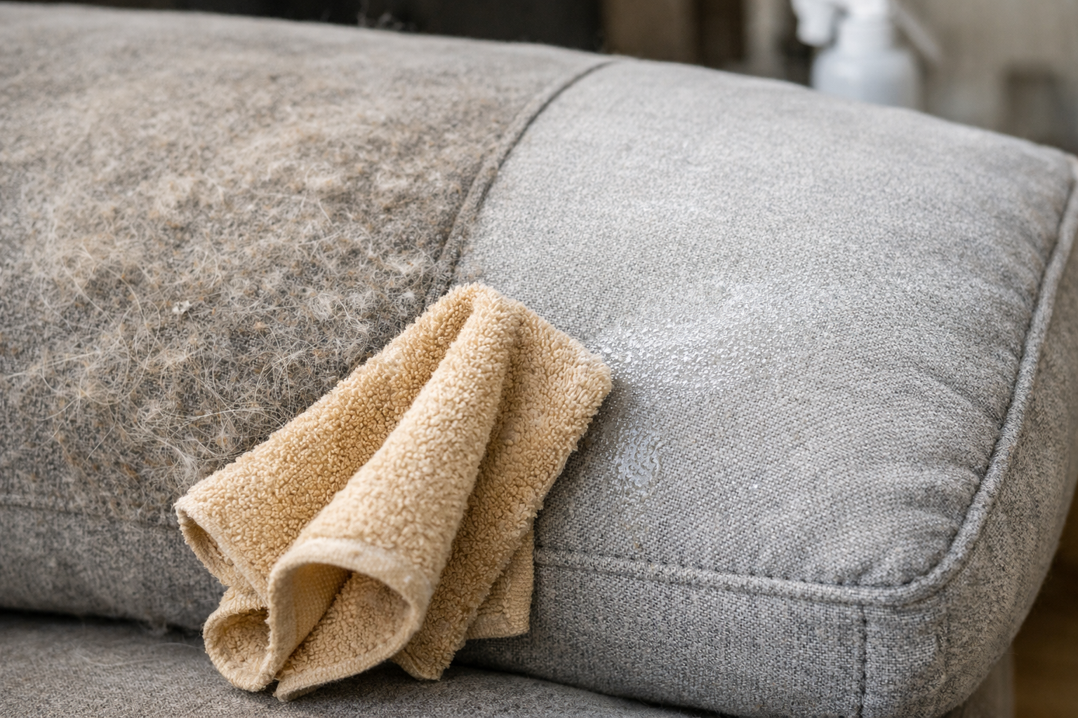 Oluline näpunäide: Enne suuremat puhastust katsetage seda omatehtud pihustit polstri silmapaistmatul alal, et tagada mööbli värvikindlus.