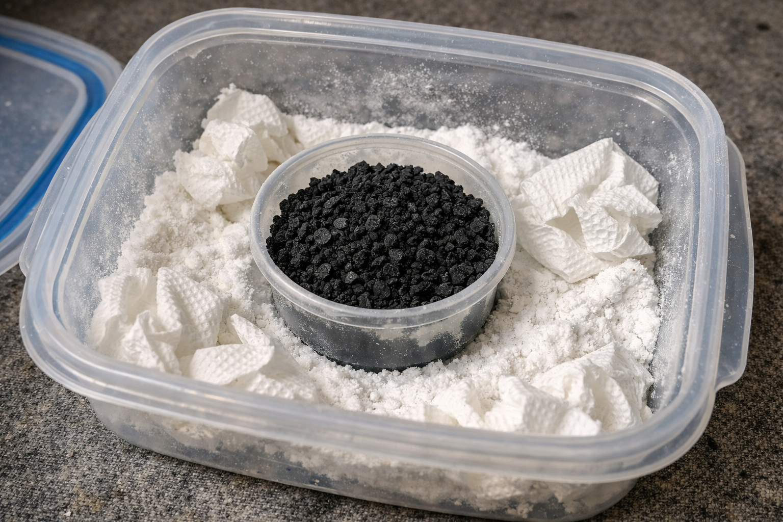 Jätke purustatud aktiivsüsi ööseks suletud kappidesse lenduvate kemikaalide imamiseks.