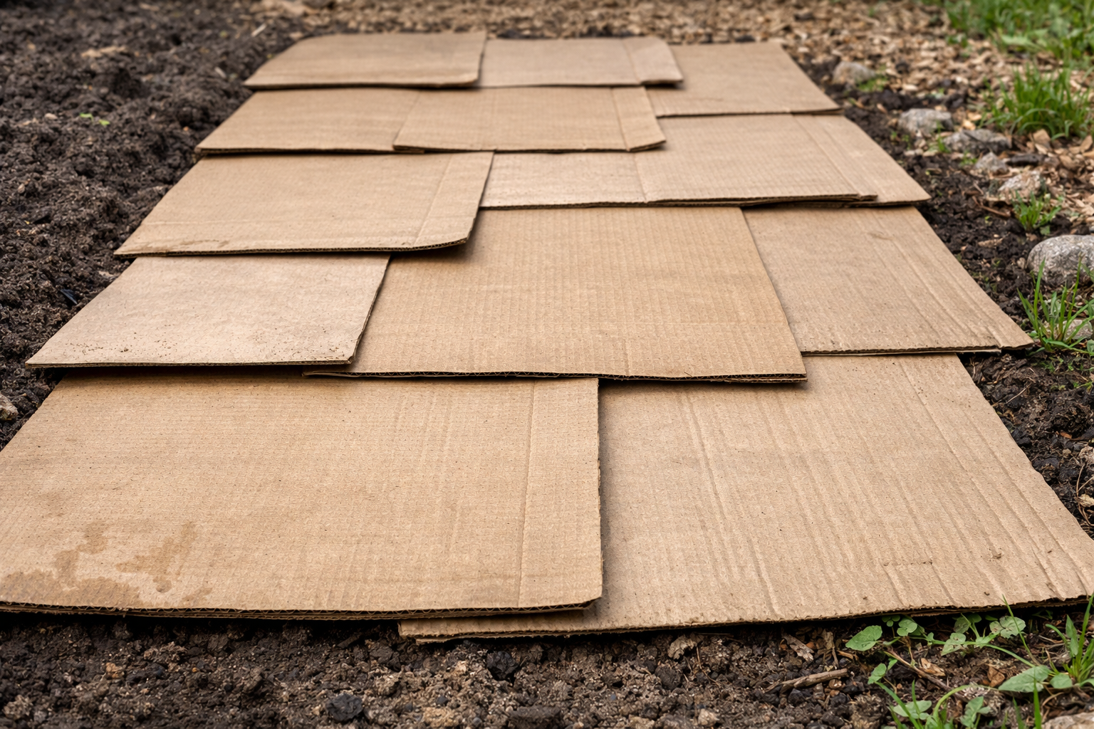 Minu arvates on üks tõhusamaid viise tavalise pakkepapi kasutamine. See on keskkonnasõbralik materjal, mis mädaneb hooaja jooksul ja muutub väetiseks, tõrjudes samal ajal isegi selliseid agressiivseid taimi nagu nisuhein või võilill.