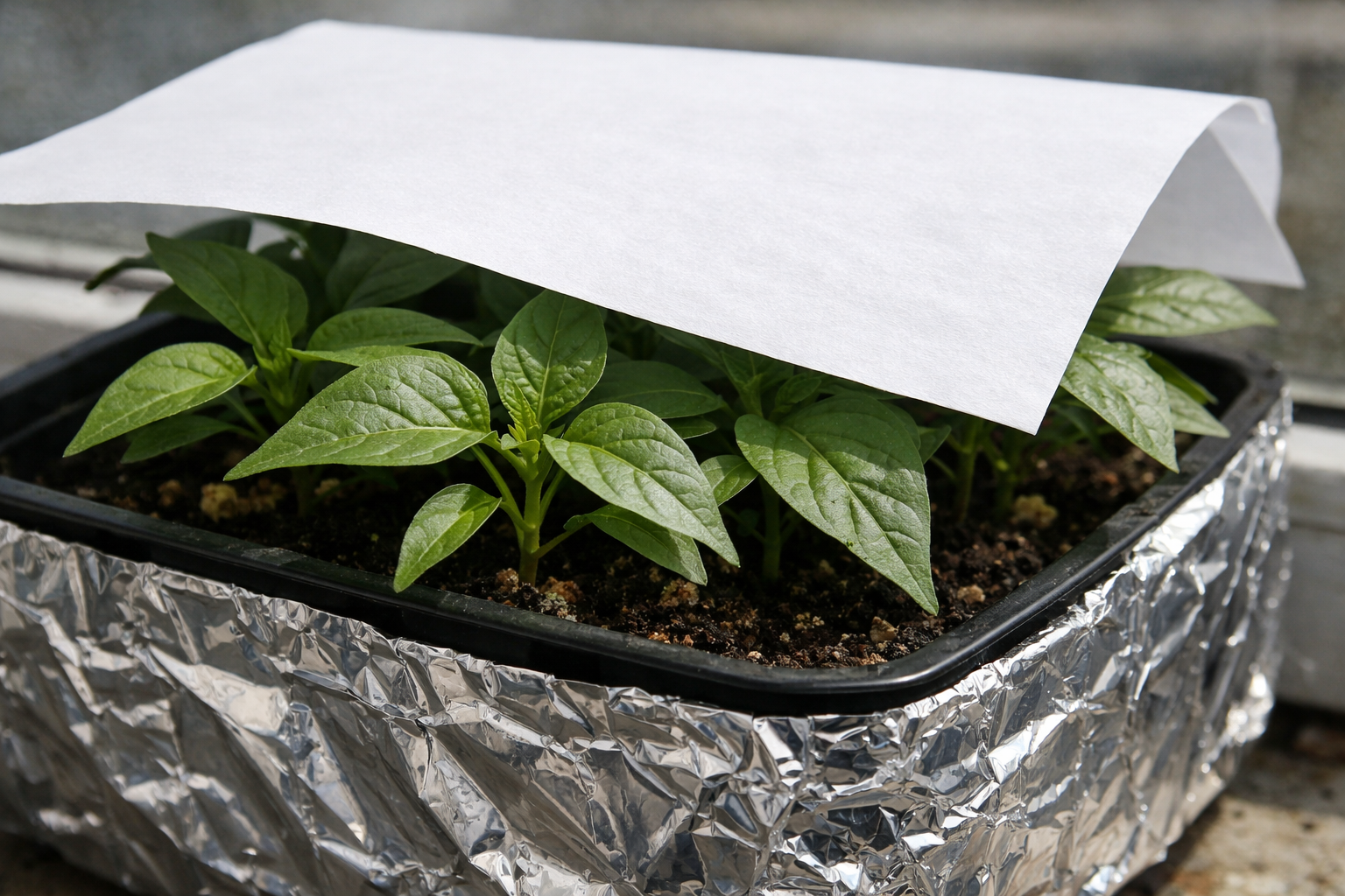 Mähi tumedad plasttopsid fooliumisse, valguse peegeldamiseks läikiv pool väljapoole.