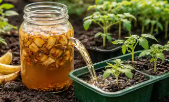 Tihendage muld kergelt sõrmedega ja valage tassi serv õrnalt sooja veega üle