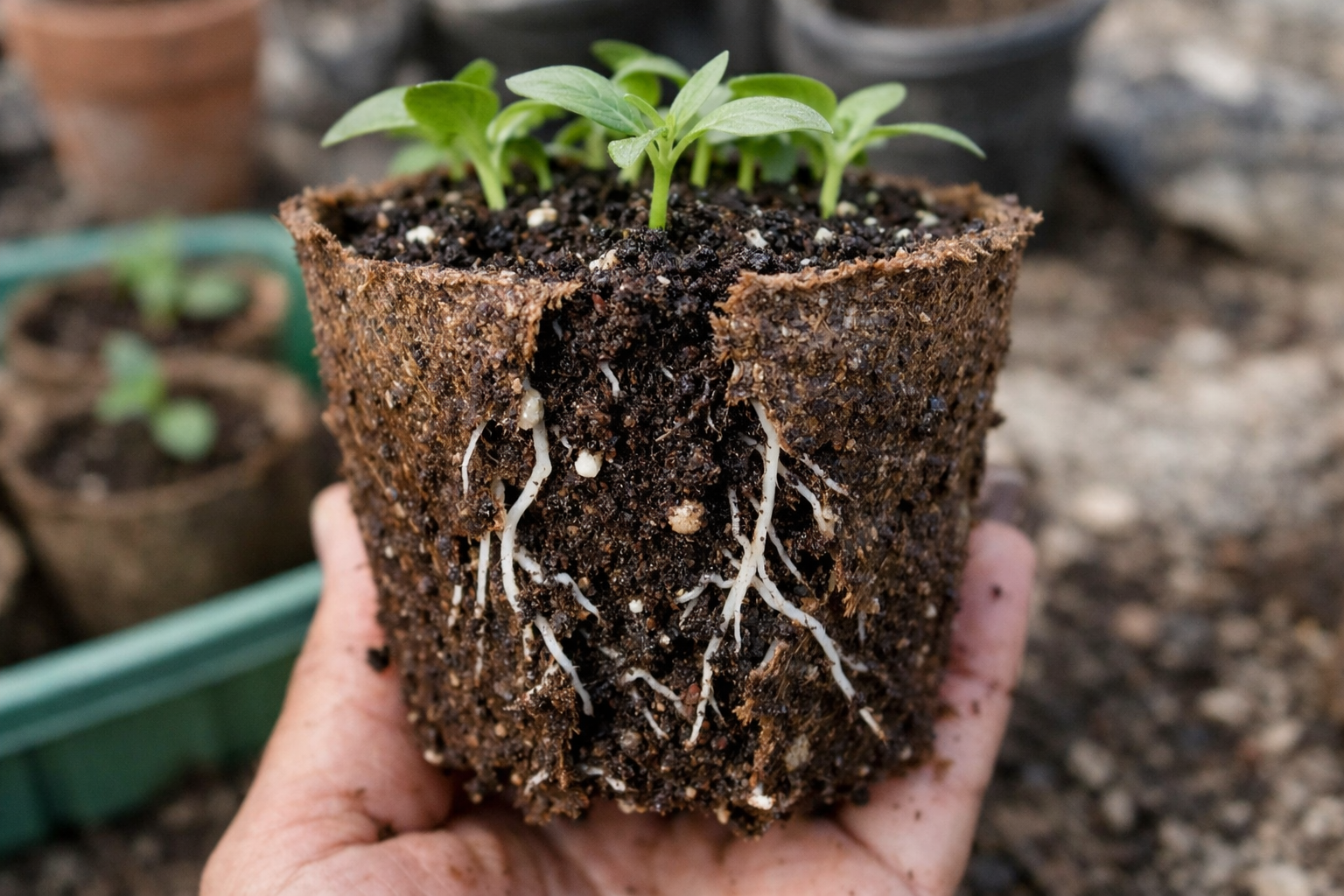 Peamine eelis, mis annab turbapotton säilitada mullakooma terviklikkus. See on kriitilise tähtsusega selliste põllukultuuride puhul nagu kurgid, paprikad ja baklažaanid. Poest ostetud anumad on aga sageli liiga tihedad. To juurestik ei sattunud “vanglasse”, enne kasutamist soovitan iga anumat töödelda kasvustimulaatori või tavalise kompleksväetise lahuses.