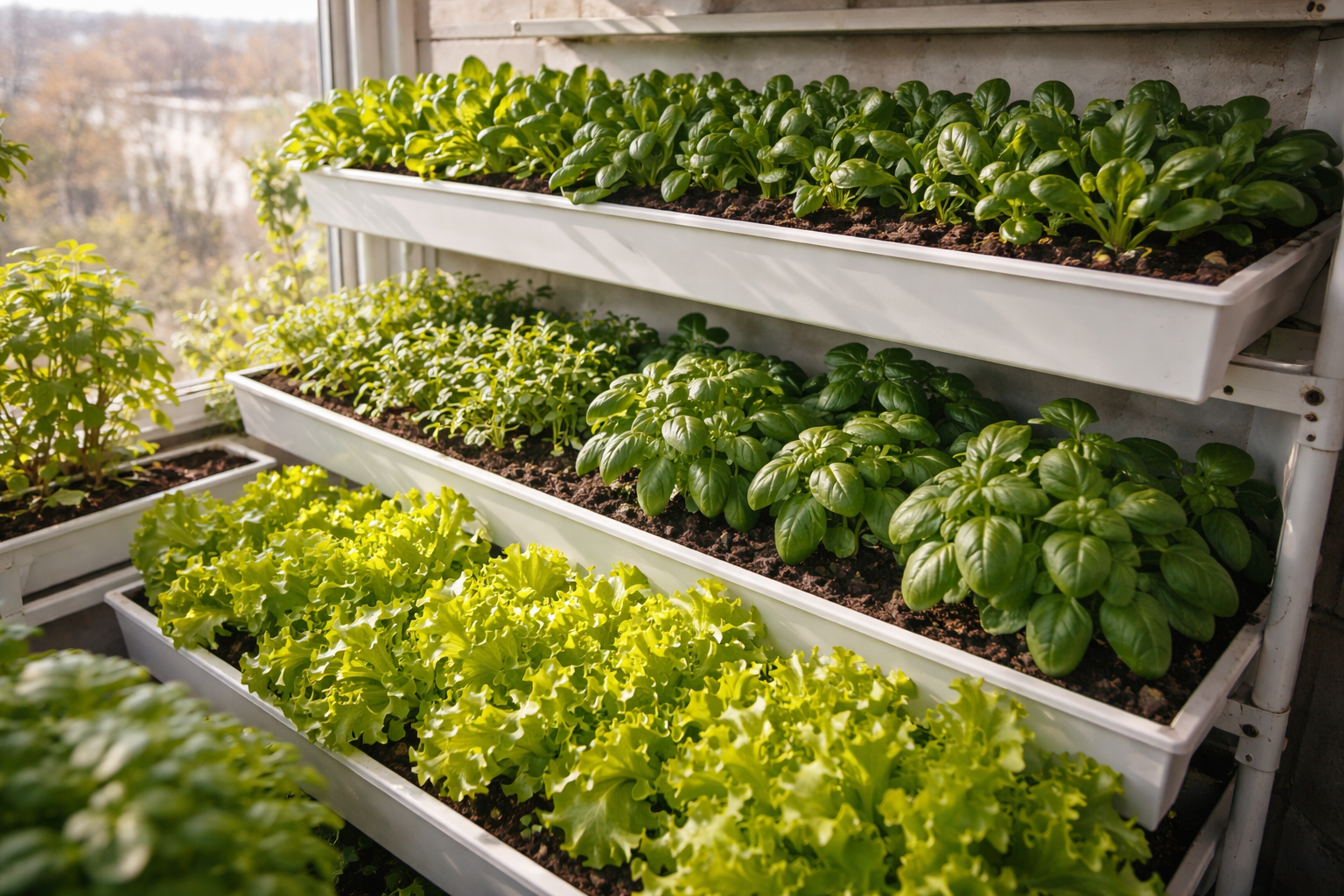 Paljud linlased unistavad värskest rohelusest otse oma akna taga, kuid seisavad silmitsi piklike, kahvatute idudega, mis kiiresti närbuvad. Tiheda saagi saab tavalisel rõdul varakevadel, kui kasutada mitmetasandilist külviviisi ja õiget temperatuurikarastust.