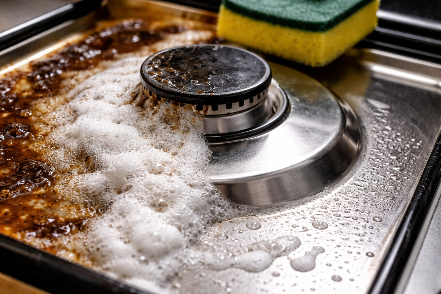Tihedate lademete eemaldamine küpsetusplaatidelt ja ahju seintelt paksu pasta abil.