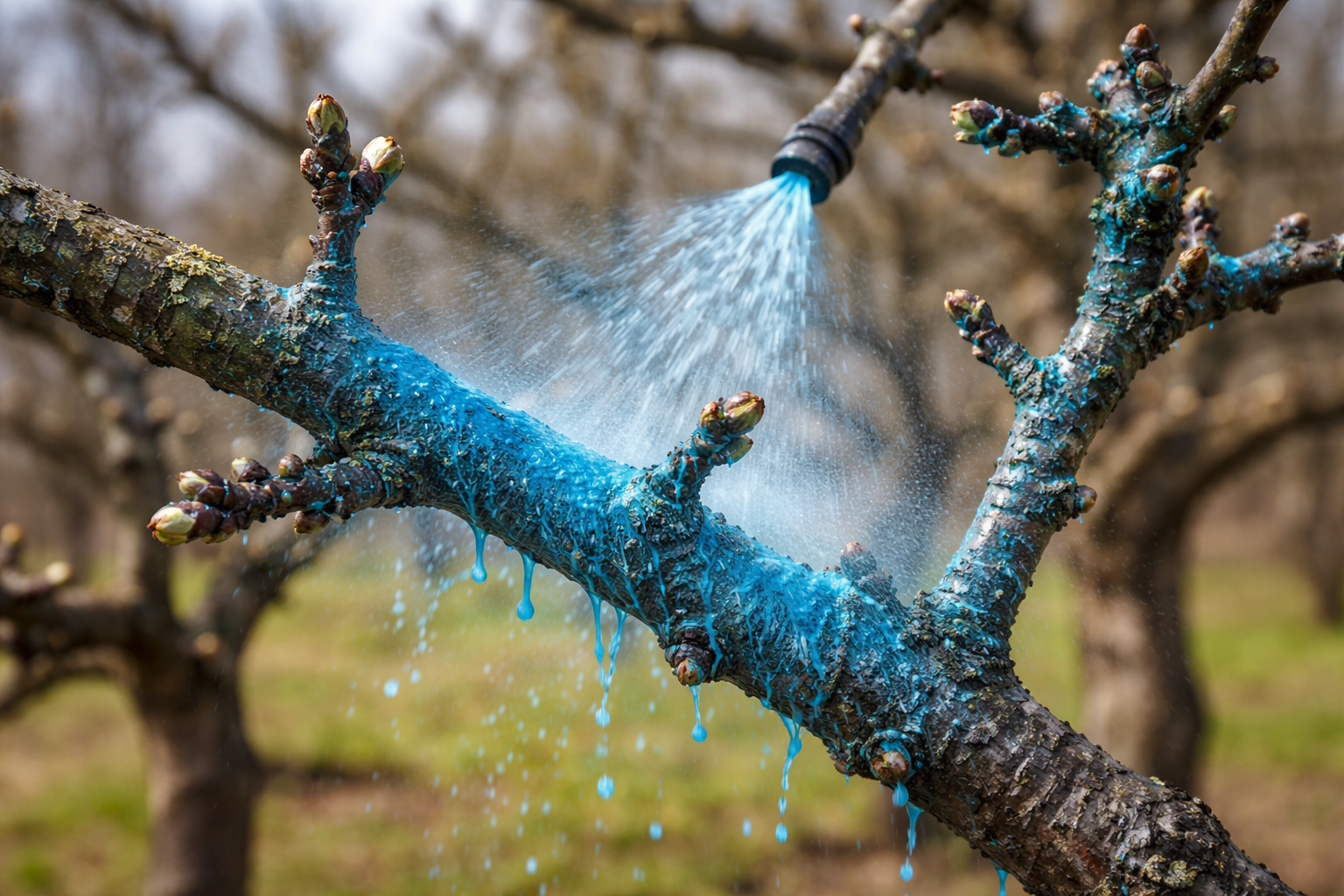 Efektiivsuse peamine saladus peitub õiges raviaja valikus – puid tuleks pritsida rangelt enne pungade avanemist, seisvale puule.