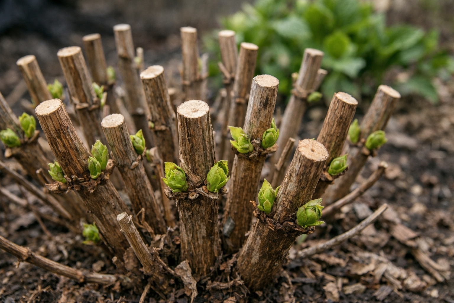 Eelmise aasta okste lühendamine stimuleerib kõige tugevamate ja tervemate alumiste pungade ärkamist.