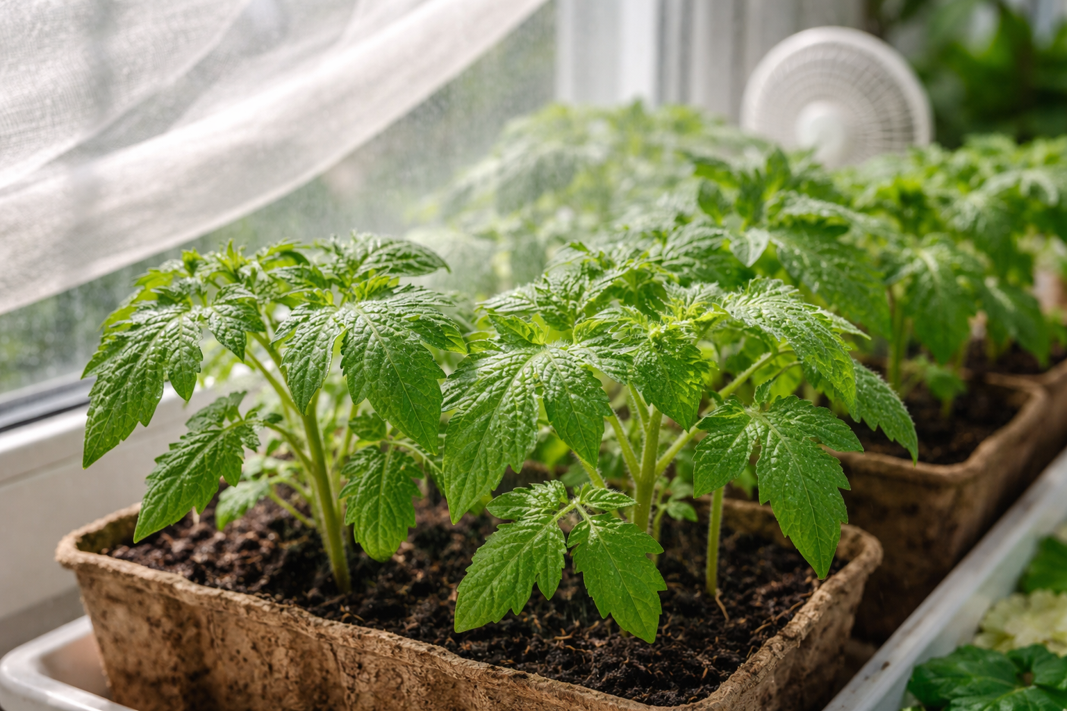 Õigeaegne mugava ja jaheda mikrokliima loomine annab tomatitele elujõu ja tervisliku välimuse. Taimed kohanevad kiiresti uute õrnade tingimustega ja jätkavad tugeva juurestiku loomist tulevaseks ohutuks istutamiseks avamaal.